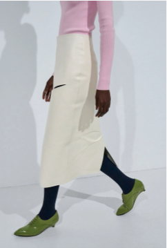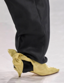 Jil Sander本季鞋履在新创意总监Simone Bellotti的执掌下,极致演绎了“在简约中寻求张力”的静奢哲学。系列摒弃一切冗余装饰,转而专注于雕塑般的廓形、顶级皮革的天然质感与精准无比的结构线条。简练的轮廓和鲜明对比的撞色,令人回想起Raf Simons时期品牌的视觉格调。彩色猫跟牛津鞋、粗跟穆勒鞋的优雅化改造,于极简之中创造出意想不到的视觉焦点与情感温度。
