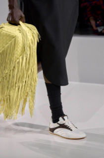 Bottega Veneta本季鞋履在创意总监Louise Trotter的引领下,开启了一场关于“感官触觉” 的深度探索。系列中最引人注目的,莫过于将奢华绒毛、温润皮革与张扬羽毛等极具表现力的材质,覆于标志性的穆勒鞋与露跟鞋之上,创造出一种兼具慵懒气息与视觉冲击的“软雕塑” 形态。而薄底复古运动鞋则顺应了当下依然余温未褪的薄底鞋风潮。整体而言,这一季的鞋履通过极致材质的对比与圆润流畅的线条,于内敛中构建出一种自信而舒适的当代优雅,完美呼应了Trotter所倡导的“真实穿衣”哲学。