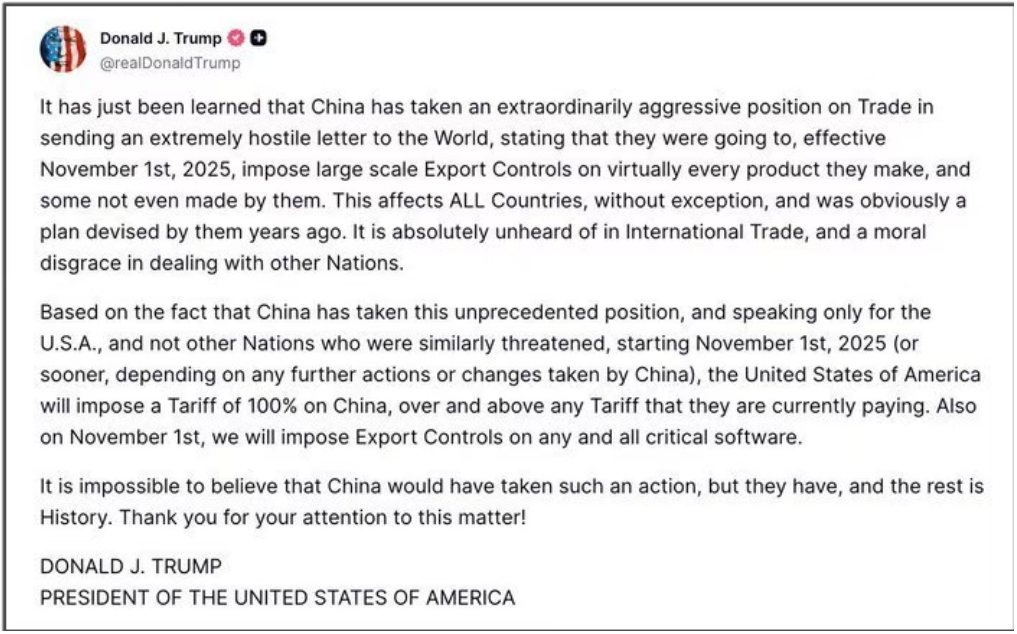 此前,中美在 8 月同意延长双边贸易谈判 90 天,为鞋履企业和消费者在假日消费季前争取到喘息空间,企业本期望借此获得更稳定的贸易环境。但特朗普此次的 100% 关税计划,再次让行业陷入不确定性。