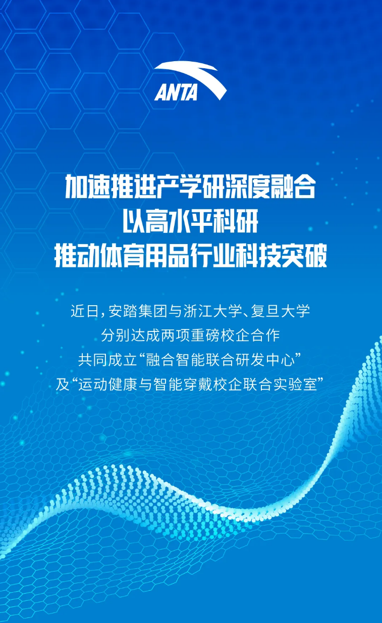 近年来,安踏集团通过持续加大研发投入,在、美国、日本、韩国、意大利、荷兰、德国设立全球七大设计研发中心,并与70多所高校及科研机构、超过250多名科研人员共同构建起开放式的全球创新研发网络。此次与浙江大学、复旦大学的强强联合,将进一步打通“科研-技术-产品-市场”全链路,推动“智能设计+运动健康”技术全面落地,让科技真正赋能运动、守护用户健康,为消费者带来更专业、更智能的产品体验。