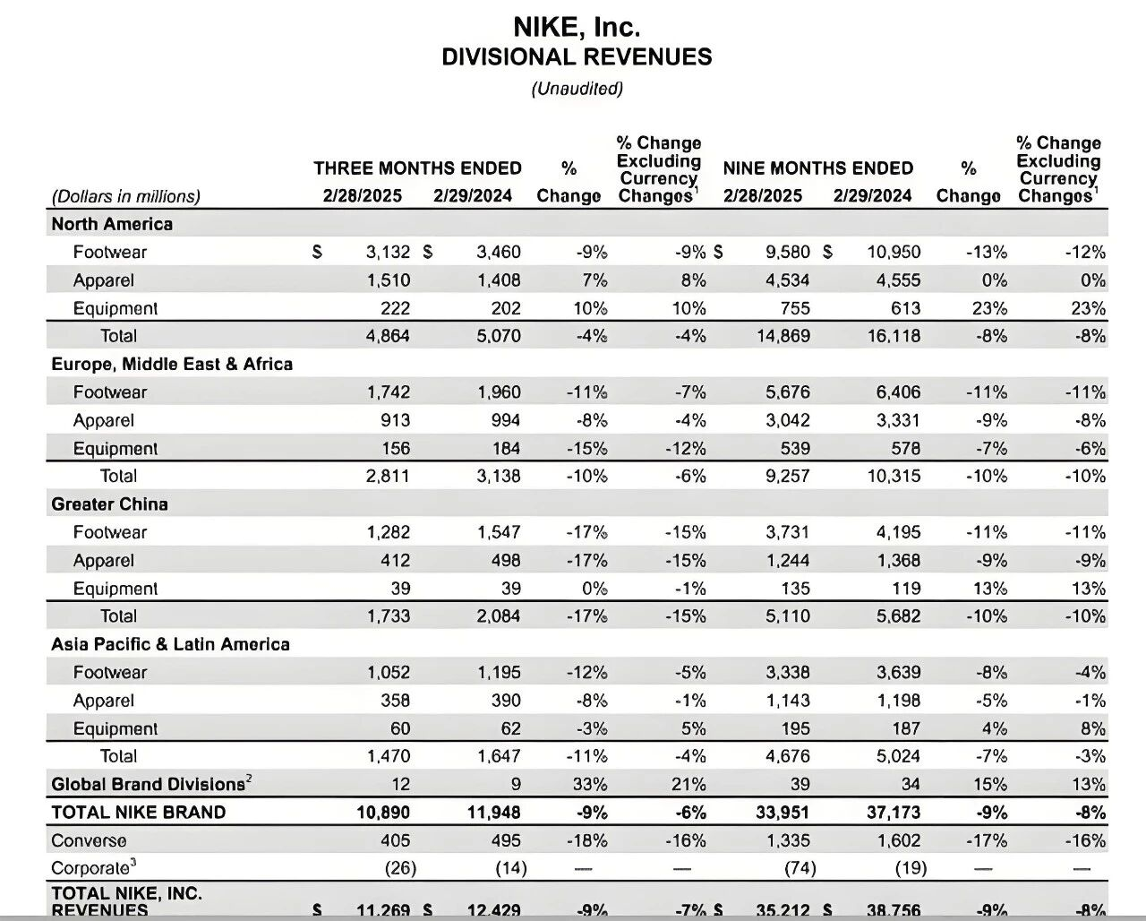 在9月30日公布的第一季度业绩数据时,耐克管理层强调,公司当前的战略重点在于通过“Win Now”计划强化北美、批发和跑步等核心领域。这一战略定位明确了耐克在关键市场和核心品类上的资源投入,为公司短期业绩复苏和长期发展奠定了基调。