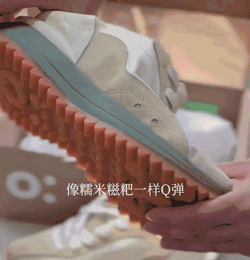 设计师在研发fúfú丝绸鞋的时候,突发奇想,能不能将鞋底做成像糯米糕一样柔软Q弹,又充满韧性呢?