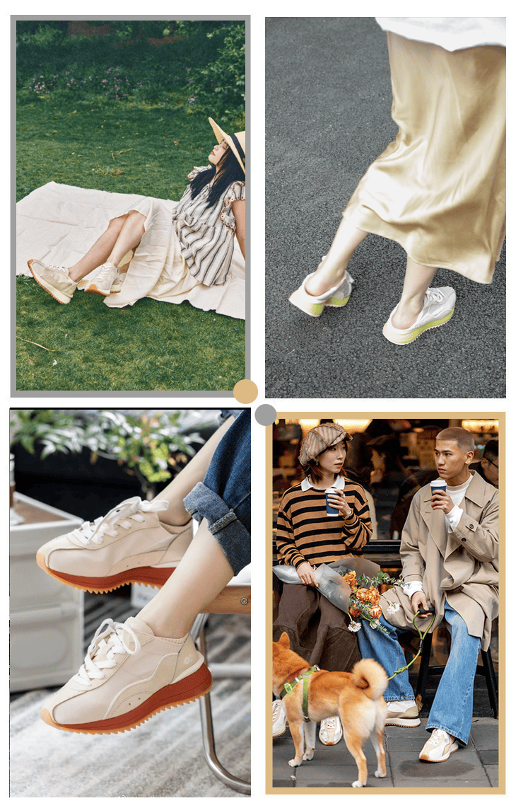 当它遇上厚重的大衣、柔软的毛衣或慵懒的阔腿裤时,既打破了运动鞋的随意,又中和了毛呢的正式,冲突与和谐融合得恰到好处。