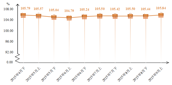 据“白沟·箱包指数”信息系统监测,2025年9月上半月,箱包产品价格指数跌后回升,收于105.84点,环比涨幅0.38%。自2025年6月下以来,指数回升并稳定保持在105.00点以上运行,标志着市场在经历短期调整后重拾升势,与上半年“先扬后抑”的波动态势相比,显示出企稳向好的迹象。