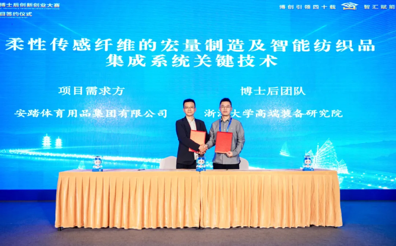 在闭幕式上,安踏集团与浙江大学高端装备研究院签订战略合作协议,共同推进 “柔性传感纤维及智能纺织品集成系统”的创新研发及量产落地。未来的运动服很可能不再是简单的面料,而是一件“智能皮肤”,可实时监测穿着者的心率、呼吸、肌肉状况等关键数据,实现人机交互的革命性体验,助力纺织服装产业向智能化、高端化转型升级。