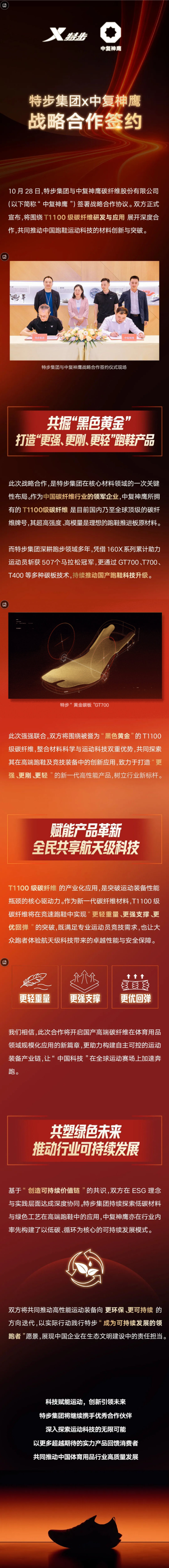 特步集团与中复神鹰达成战略合作,“碳”索跑鞋新动能