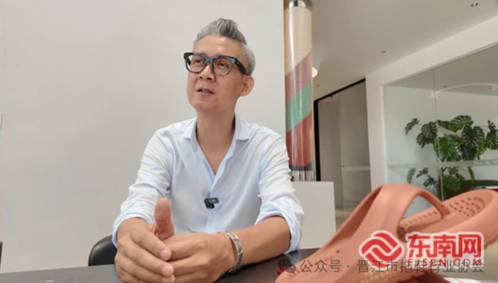 走进晋江市祥泰鞋业商贸有限公司,展厅里的样品墙宛如一幅微缩“世界拖鞋地图”,不同款式、功能的拖鞋,对应着全球不同市场的需求;隔壁的“EGO易途拖鞋”直播间里,主播正对着镜头流利介绍:“这双是EVA材质,不磨脚、不挤脚,哪怕脚底外翻、有足弓筋膜炎,都能穿……”
