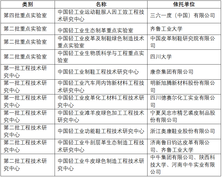 会议同时公布了第四批轻工重点实验室和工程中心名单,三六一度()有限公司“轻工业运动鞋服人因工效工程技术研究中心”入围。此外齐鲁工业大学“轻工业生态制革重点实验室”等第一、二批重点实验室和工程中心通过复评,具体名单如下: