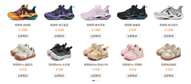 在当时,童鞋市场的一线阵地往往被耐克、阿迪达斯、安踏、特步等成熟运动品牌的童装支线占领。由于气垫、碳板这类运动科技的儿童应用场景有限,所以各品牌彼时的竞争重心也大多以材质、外观、性价比这三大选项为主。