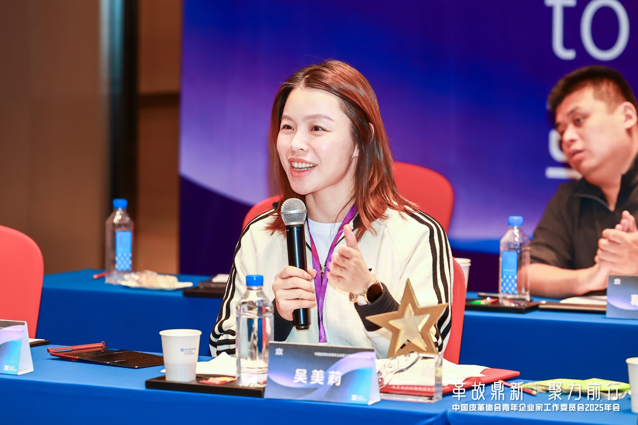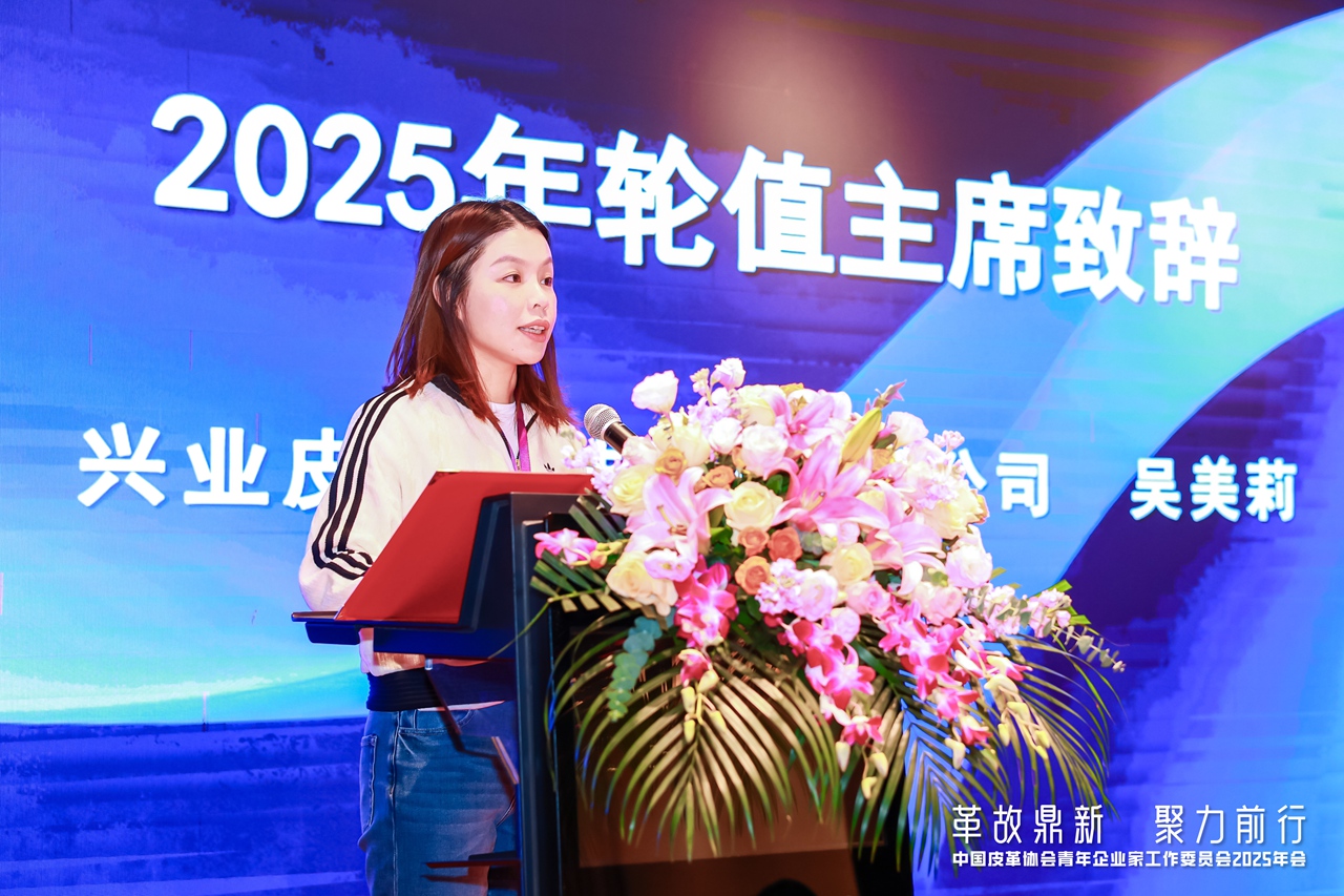 兴业科技股份有限公司副总裁吴美莉随后发表就任致辞,她强调,面对行业的变革与挑战,青年企业家应秉持“热情、专注、创新、分享”的精神,以“革故鼎新”的勇气推动转型,以“聚力前行”的信念协同合作,共同塑造皮革行业科技、时尚、绿色的新未来,表达了对未来工作的展望与决心。