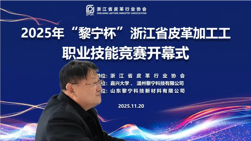 为增进“红船精神”与“沂蒙精神”交流,推动其在浙鲁两省制革产业链高质量发展中践行,促进浙江省制革行业技术交流与创新,加快培养和选拔高技能人才,培育工匠精神,提高职工队伍技术技能水平。由浙江省皮革行业协会主办,嘉兴大学、温州黎宁科技有限公司协办,山东黎宁新材料科技有限公司承办的2025“黎宁杯”浙江省皮革加工工职业技能竞赛,2025年11月20日晚在线上举行开幕式。