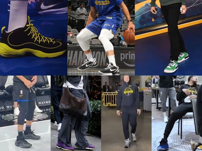 11月16日,他首次以自由身亮相,热身时穿的是耐克科比6代“Mambacita”配色。到了11月19日对阵魔术,他的鞋款更是轮番上阵——从球员通道里的锐步“Shaqnosis”,到赛前热身的耐克Air Penny 2,最后在正赛换回自己的安德玛Curry Series 7。此后,李宁韦德之道的“魔鬼鱼”配色、Air Jordan 3等也相继出现。