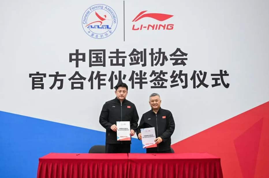 2025年11月26日,击剑协会与李宁品牌在北京李宁中心共同举行签约仪式,宣布李宁品牌成为击剑协会及国家击剑队官方赞助商。自2025年起,李宁品牌作为国家击剑队唯一专业击剑、运动及运动休闲类服装鞋帽及相关配件配饰装备的赞助商,全面支持国家队训练与参赛需求。击剑协会主席王海滨,国家体育总局自行车击剑运动管理中心副主任、击剑协会副主席兼秘书长王峻燕,李宁集团董事长特别助理张向都以及国家击剑队运动员、教练员、协会工作人员等共同出席签约仪式。