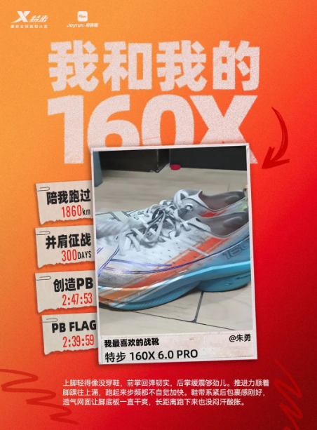 “160X系列产品就是我们聚焦在精英跑者而研发的一双鞋,它也是特步建立在跑步生态圈创新上的产物。”吴联银说。截至今年上半年,160X系列已经助力107位运动员,斩获507个马拉松冠军。今年8月,在特步发起的#我和我的160X故事征集中,有超过3.5万位粉丝投稿,记录了160X系列陪伴下的跑步故事。