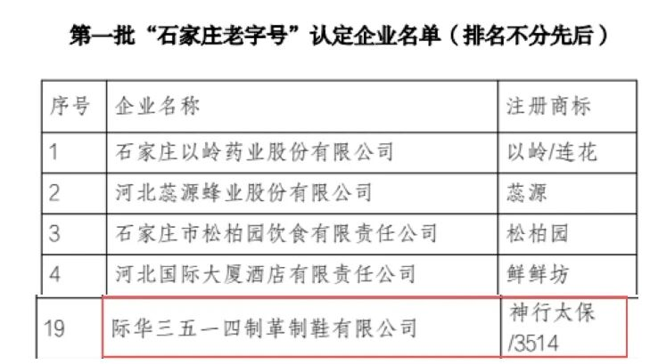 际华3514公司成功被认定为第一批“石家庄老字号”企业