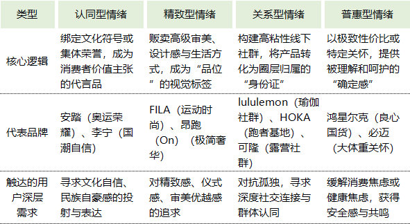 对于安踏、李宁这样上榜的国产巨头,其提供的情绪价值已从早期的“国货性价比”,升级为更深层的 “文化认同与自豪感”。