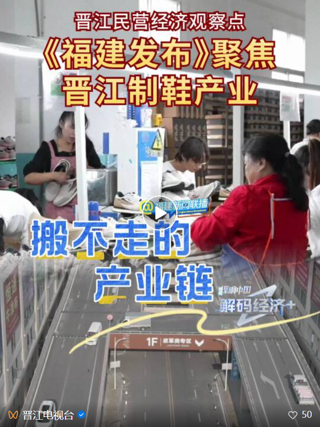 12月26日,《福建发布》福建新闻联播推出系列短视频《理想·解码经济+》,第一期关注:晋江“搬不走的产业链”。