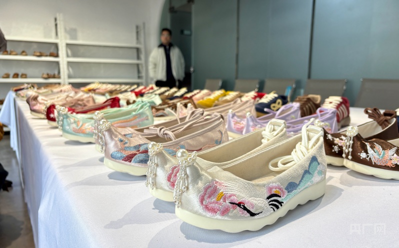 “这款绣花鞋的灵感来源于我在洛阳多个景区看到游客喜欢身穿汉服拍照,但是鞋子却与服装不相配套,于是就有了设计汉服绣花鞋的想法。”该工作室创始人马育文称,其设计团队通过查看文献,将牡丹、祥云等传统元素融入布鞋,让老布鞋焕发新中式美学光彩。