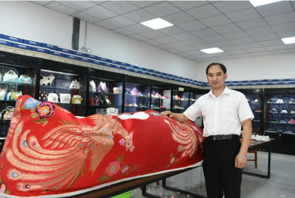 为了将段氏传统布鞋衲制工艺更好地传承和发展,段氏手工布鞋以其精选的材质、精湛的做工深受欢迎。段玉国作为段氏手工布鞋的传承人,在继承段氏手工布鞋传统纳制工艺的基础上不断探索创新,融入现代元素,把绣花等形式融入到产品里,创作了大量工艺精良、花式多样的产品。段氏传统布鞋衲制工艺千层底布鞋的做工复杂,工序繁多,要求严格,制作难度大、耗时长,每双鞋的制作都要经过剪裁底样、填制千层底、纳底、切底边、剪裁鞋帮、绱鞋、楦鞋、子修抹边、检验等工序,制作一双鞋往往要花五六天。手工纳底要求每平方寸纳81针以上,一双鞋至少2100针,加工时得用手勒紧,针码还得分布均匀。手工绱鞋时,则要求必须紧绷楦子,平整服帖。