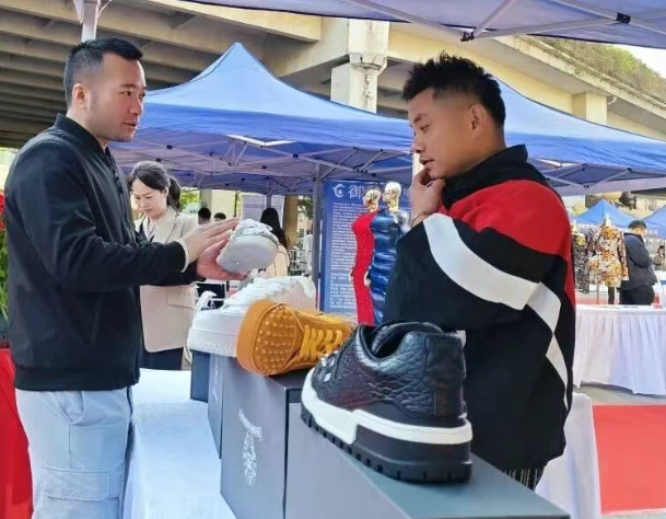 D活动现场,新濠畔万豪鞋材广场展位前人头攒动,代表广场参展的藏牙虎(CRYPTIGER)男鞋品牌,凭借独特的设计理念与优质品质,赢得了国外客户的广泛青睐。品牌主理人吕耀晗在接受官方媒体采访时表示,广州拥有强大的供应链体系,其设计开发能力与品质把控水平媲美欧美,中外设计师的开发思路高度契合。“我们将国风、潮牌理念融入设计,把牙藏、虎头等元素推向国际,这离不开新濠畔万豪与政府为年轻设计师提供的宝贵出海契机。”吕耀晗的话语,既彰显了对广州产业实力的自信,也印证了新濠畔集团为设计师群体搭建展示与出海平台的赋能成效。