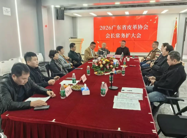 1月15日,“2026广东省皮革协会(简称‘粤皮协’)会长常务扩大会暨换届动议通气会”在广州市白云区增槎路518号西城盈大.科创园举行,会长单位:百丽时尚集团-丽荣鞋业(深圳)有限公司郭忠杰;常务副会长单位:广州市惠景皮革有限公司倪建荣、广东省六合创新科技有限公司陈锦亿、广东万里马实业股份有限公司沈亦民、佛山市南海区联港皮革有限公司邓丽甜、江门市箱包皮具业商会李祝平;副会长单位:广州市泉风化工科技有限公司曾博辉、佛山市南海区狮山正隆皮业有限公司刘河清、江西隆华材料科技股份(江门新微创新)有限公司闻国彪、美多绿汽车皮革(广州)有限公司张克强;名誉会长:王建新;监事:秦建华;秘书长陈万日等共13人出席,本次会议由常务副会长单位-广东省六合创新科技有限公司承办。