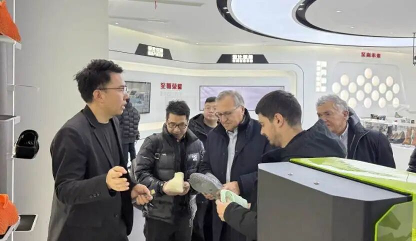 1月28日-30日,市鞋革行业协会秘书长叶浩寄陪同IDD考察团先后走访巨一集团、卓诗尼鞋业、奥康集团、德赛集团等温州市多家头部鞋企,调研了世界鞋都设计师(工程师)协同创新中心等公共平台。在鞋企生产研发一线,实地察看生产工艺与创新成果,与企业负责人深入交流,对温州鞋类产业完备的产业链、强劲的创新活力给予高度评价。在协同创新中心,考察团饶有兴致地了解了中心在产学研融合、设计资源整合等方面的运营模式,对中心的产业赋能能力给予充分认可。