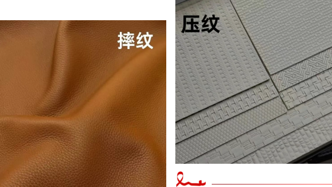 压纹:用固定模具高温高压印出图案,纹理完全一致,缺少层次与变化。