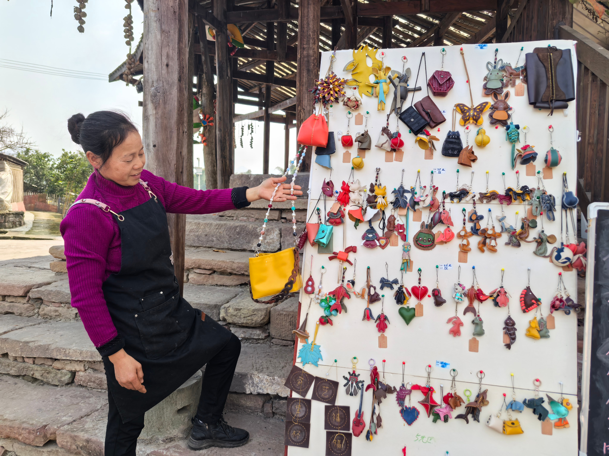 皮鞋女工甘遐学回乡经营民宿,在空坝上办起了皮革工作室。余常海摄