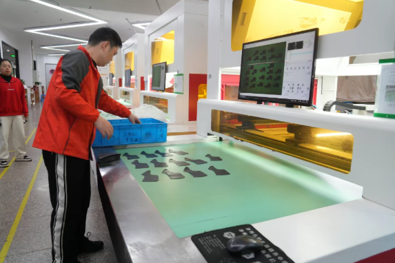 早上9时许,记者走进红蜻蜓生产车间看到,自动划线机、自动切割机、自动数码冲孔机等自动化设备正高速运转,在机器轰鸣声中,一道道工序紧密衔接,生产精度和效率直观可见。实际产量500,目标产量3000,达成率17%……在红蜻蜓男鞋裁断线数字屏幕上,生产关键信息转化为直观可辨的形式,让生产管理 “一眼看透”,实现了"信息在线"与"管理在线",在提升效率的同时也降低了不良率,让问题无处隐藏、目标清晰可见。