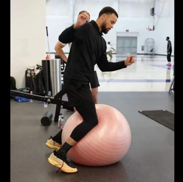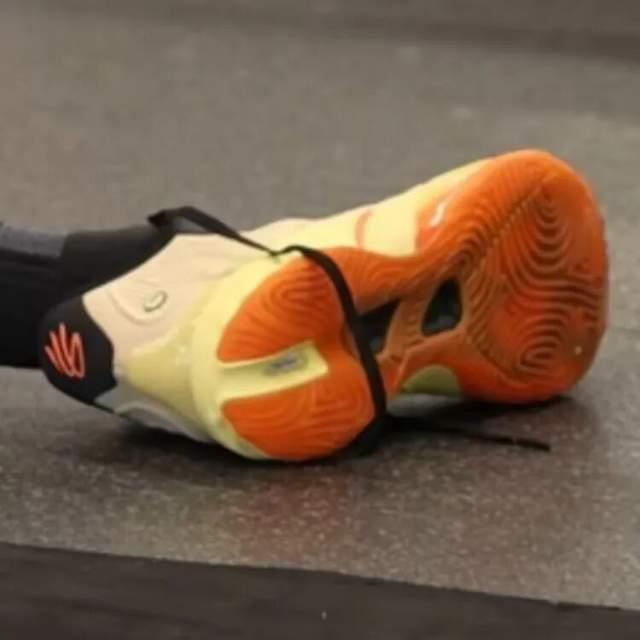 库里训练中上脚有个人logo的安踏球鞋