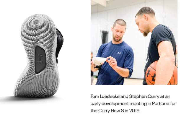 2019年,吕德克的团队带着一项还在秘密研发中、原本打算用于专业跑鞋的无橡胶大底科技试穿鞋去波特兰给库里试穿。库里非常喜爱这双鞋的新科技,当他得知这项科技在2021年才投入市场时,库里展现出了不容商量的态度:“我需要这项技术马上用在我的 Curry 8 上。” 这直接促使安德玛倾全公司之力,提前打乱了生产线计划,将这项革命性科技应用到了篮球鞋上。