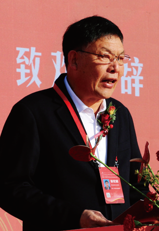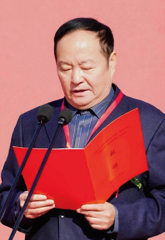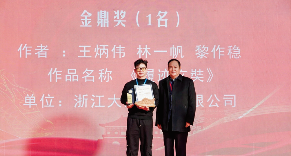张西文为“首届布鞋之都·偃师杯”鞋类创新设计大赛金鼎奖获奖者颁奖。