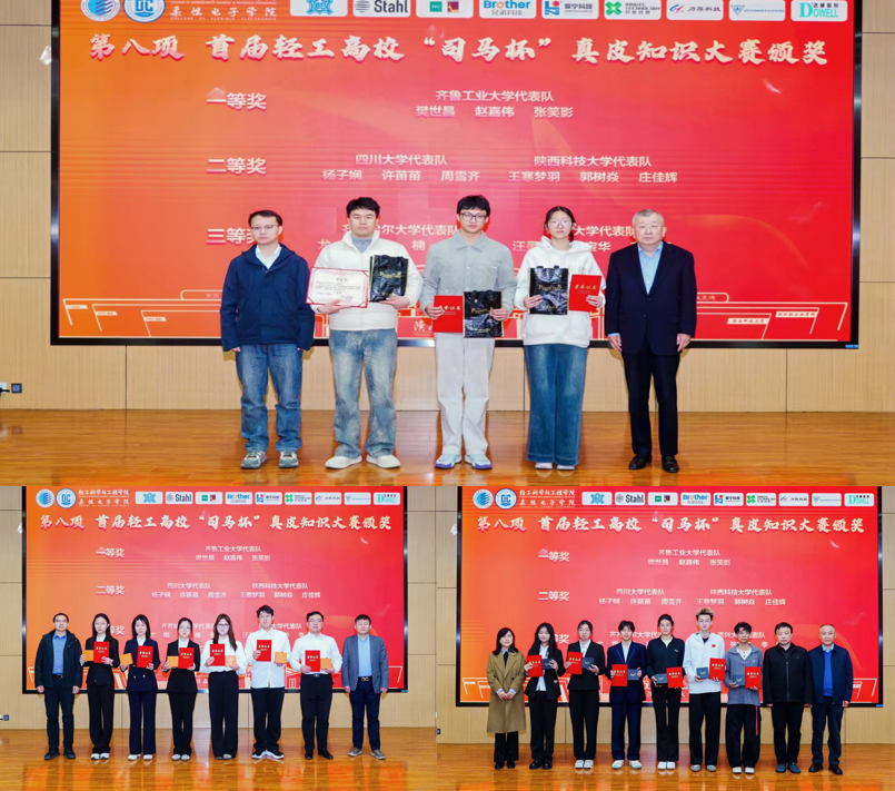 比赛现场,来自四川大学轻工科学与工程学院、齐鲁工业大学轻工学部、齐齐哈尔大学轻工与纺织学院、嘉兴大学材料与纺织工程学院及陕西科技大学轻工学院的 15 名选手,围绕真皮知识、工艺技术与行业前沿信息等核心内容,以问题必答、问题抢答等形式展开激烈角逐。各代表队沉着应战、尽显风采,专家评审严谨评判,最终齐鲁工业大学参赛团队斩获一等奖,四川大学、陕西科技大学参赛团队获得二等奖,齐齐哈尔大学、嘉兴大学参赛团队获得三等奖。