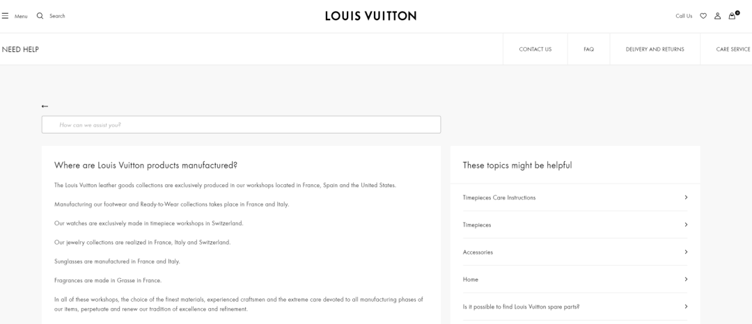 目前,路易威登官网显示(下图),其皮具系列主要在法国、西班牙、意大利和美国的工坊生产,鞋类和成衣则集中在法国和意大利两地制造。据悉,路易威登在罗马尼亚和土耳其等地也设有皮革工厂,但尚未将其标注为产地。