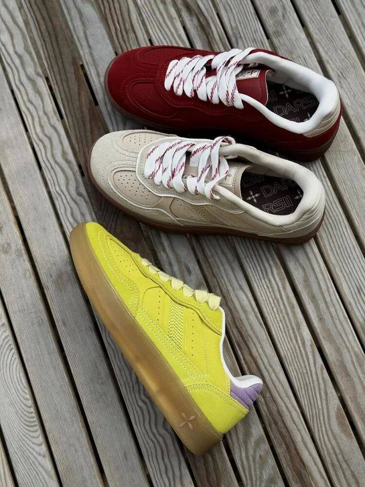 柔和不刺眼的奶黄调,搭配复古德训鞋型,甜而不腻、元气十足。