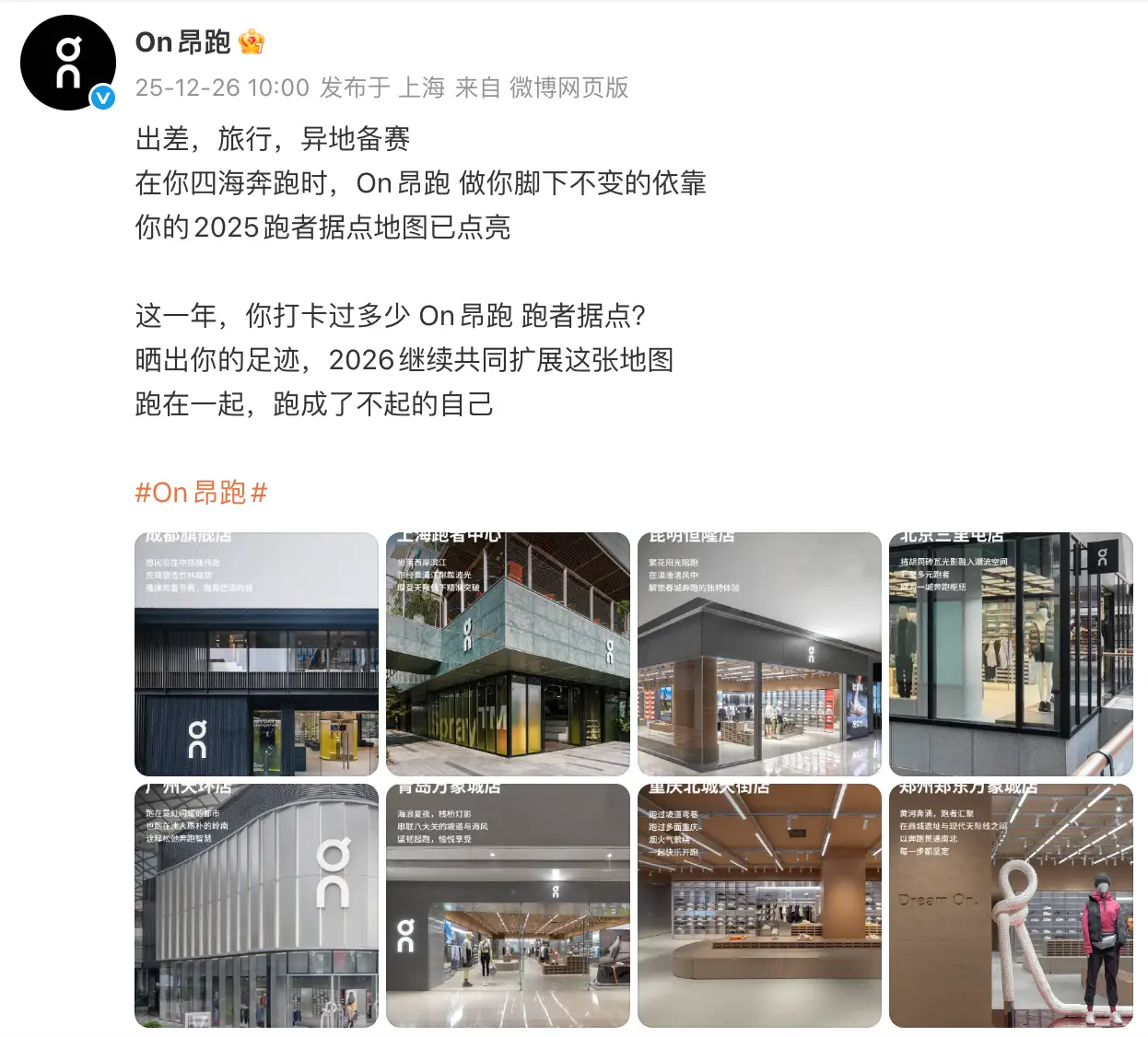 相比非标商业时代的策展、市集等活动,这种零售空间的引流更为日常,也更有利于针对性塑造品牌文化。对于昂跑这样的国际品牌来说,还可以由此扎入区域,摆脱外来品牌的疏离感。