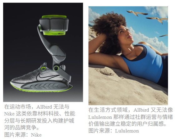 ÕâÖֽṹÉϵľÖÏÞ£¬Ê¹µÃ Allbirds ÔÚÓë Nike »ò Hoka µÄ¶Ô±ÈÖÐÏÔµÃÓÈΪ±»¶¯¡£ºóÁ½ÕßµÄÔö³¤Âß¼£¬±¾ÖÊÉϽ¨Á¢ÔÚ³ÖÐøµÄ³¡¾°²ð½âÓë¼¼ÊõÔÙ¶¨ÒåÖ®ÉÏ£ºÍ¨¹ýÅܲ½¡¢ÑµÁ·¡¢¾ºËÙ¡¢»Ö¸´µÈ²»Í¬Î¬¶È²»¶Ïϸ·ÖÐèÇ󣬲¢ÒÔ²ÄÁϿƼ¼ÓëÐÔÄÜÉý¼¶×÷Ϊ֧³Å£¬ÐγÉÒ»¸ö²»¶ÏÀ©ÕŵIJúÆ·ÓîÖæ¡£¶ø Allbirds Ôò³¤ÆÚ¹ÌÊØÔÚ ¡°ÊæÊÊ¡± ÕâÒ»µ¥Ò»¼Ûֵά¶ÈÉÏ£¬¾¡¹ÜÕâÒ»µãÔÚÔçÆÚ¾ßÓÐǿʶ±ð¶È£¬µ«ÊæÊʱ¾Éí²¢²»¾ß±¸³ÖÐø·Ö²ãµÄÄÜÁ¦£¬Ò²ÎÞ·¨Ö§³Å¸´ÔÓÊг¡Öеij¤ÆÚ¾ºÕù±ÚÀÝ¡£