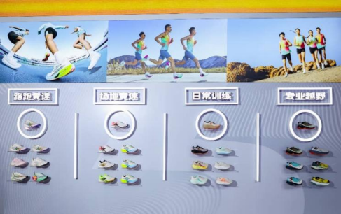 在跑步产品展区,361°展示了旗下新款竞速跑鞋产品矩阵。作为361°竞速矩阵的旗舰之作,飞燃5系列延续了品牌在碳板竞速鞋领域的技术积累,采用升级立体曲面碳板与高回弹超临界发泡中底,兼顾缓震与推进力,成为全马与半马跑者的全能战靴。该系列助力361°跑步代言人在国内外多项马拉松赛事中屡创佳绩,在近日举行的2026淮安马拉松比赛中,361°品牌代言人李子成全程穿着飞燃5FUTURE战靴,以2:13:36的成绩斩获淮安马拉松冠军。