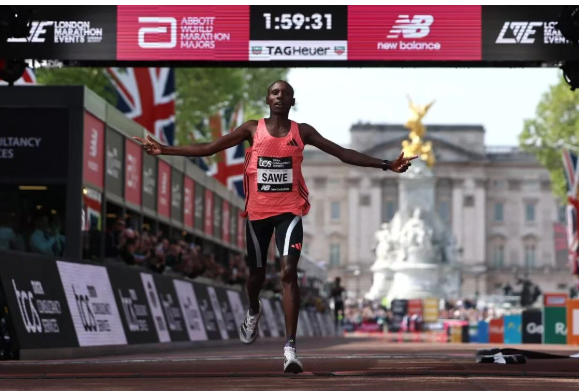 第一名的名字在4月26日这一天传遍全球,萨巴斯蒂安·萨维,他跑出的1小时59分30秒的全新世界纪录,比当初基普乔格在2019年非正式比赛中进行破二挑战跑出的成绩还快了10秒,比此前由基尔文·基普图姆保持的官方世界纪录,则快了整整1分零5秒。